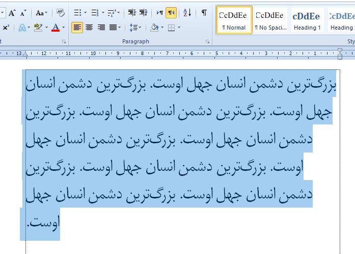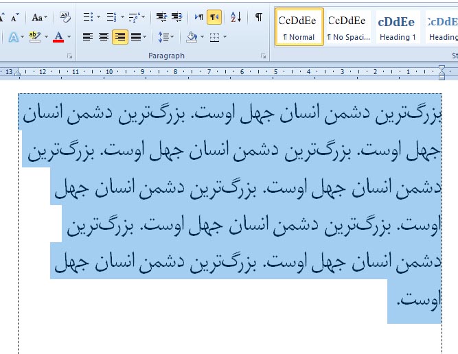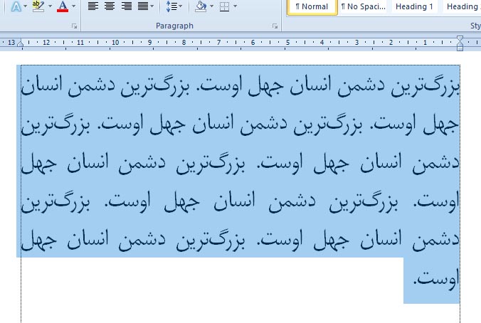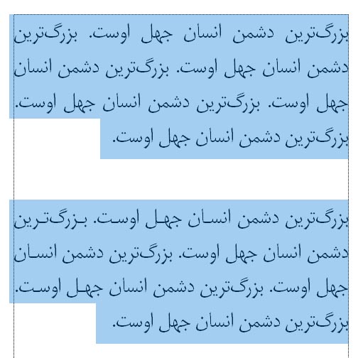 5-در حاشیه سمت راست سه بار کلیک کنید؛ تمام متن انتخاب می‌شود (می‌توانید از ترکیب Crtl+A نیز به همین نتیجه برسید).