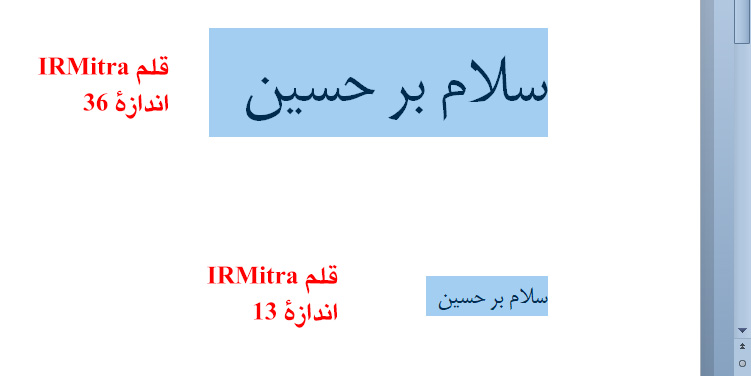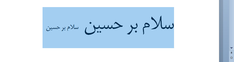 در «ورد» به صورت خودکار، بر اساس تنظیمات اندازۀ قلم (فونت) و پاراگراف، پهنایی برای خط اختصاص می‌یابد. برای اینکه این پهنای اختصاص یافته را ببینید، کافی است خط مورد نظر را با ماوس انتخاب کنید. در تصویر زیر، عبارت «سلام بر حسین» با دو اندازۀ مختلف قلم نوشته شده است: