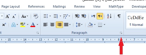پس پایان تنظیمات مورد علاقه، Paragraph را باز کنید (در سربرگ Home روی فلش ریز در گوشه سمت راست کادر Paragraph کلیک کنید).