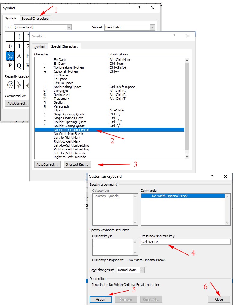 در محیط «ورد» نیز می‌توان از همین ترکیب استفاده کرد. نویسۀ مربوطه در محیط «ورد» با نام «Zero Width Non Joiner» شناخته می‌شود. می‌توان به روش زیر برای این نویسه یک «میانبر» تعریف کرد (مراحل زیر را با دقت انجام دهید. این مراحل برای درج هر نویسه‌ای کاربرد دارد):