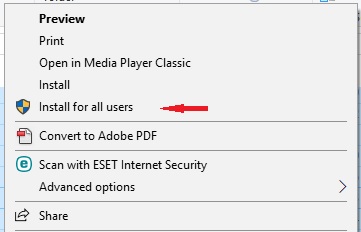 بر روی آنها کلیک راست کرده، گزینۀ «Install for all users» را کلیک کنید.