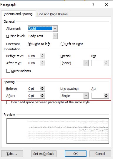 3- تنظیمات پیش‌فرض برای پاراگراف