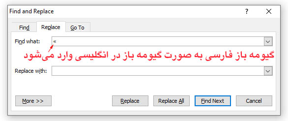 4- حال باید کادر «Find and Replace» به صورت زیر در آمده باشد.