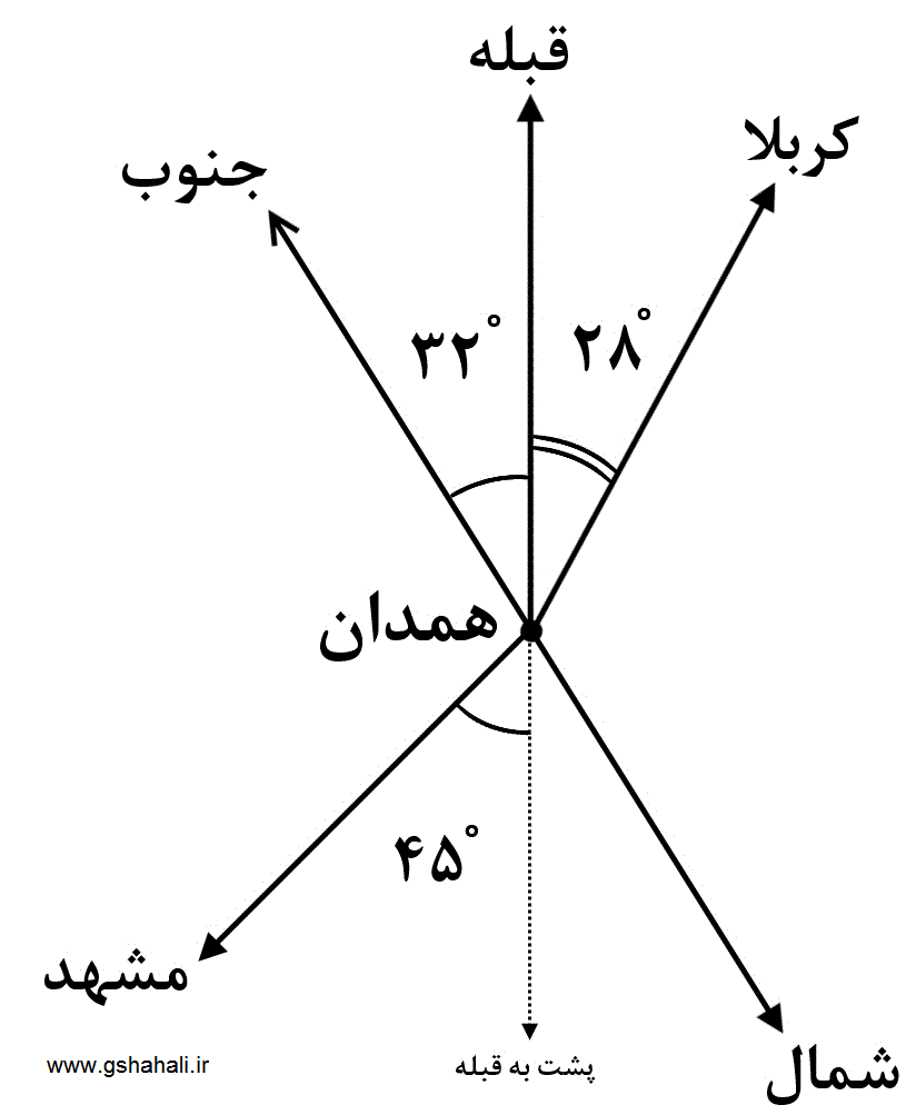 راستای مکه (قبله)، کربلا و مشهد در همدان