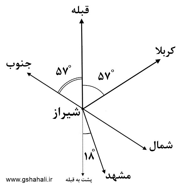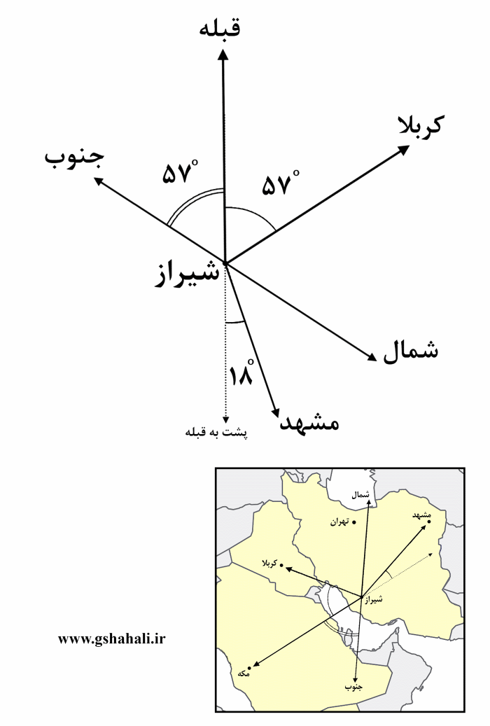 راستای مکه (قبله)، کربلا و مشهد در شیراز